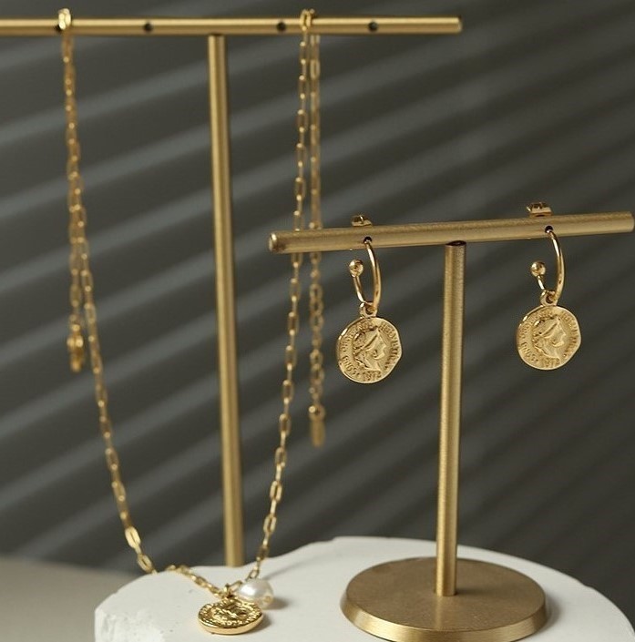 Portrait Coin Metal Freshwater Pearl Necklace Jewelry Set