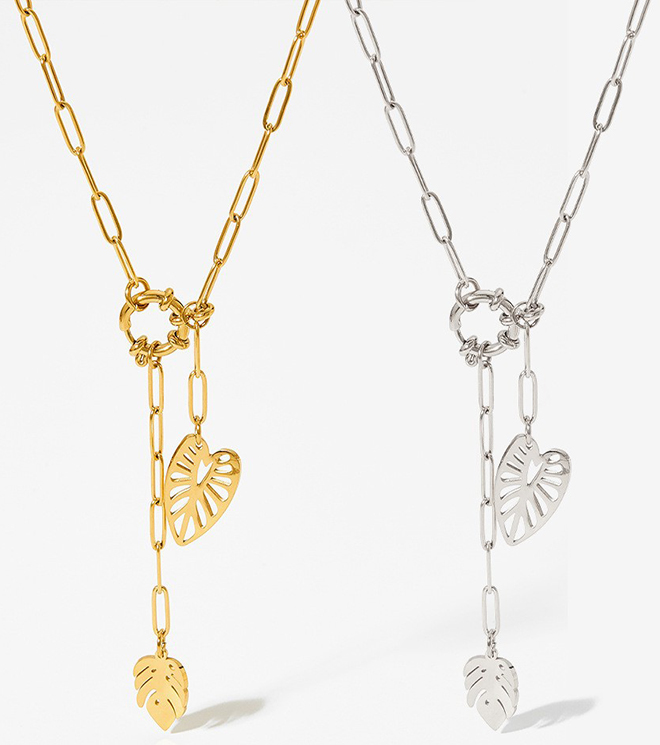 Double Leaf Vintage Stainless Steel Gold Necklace