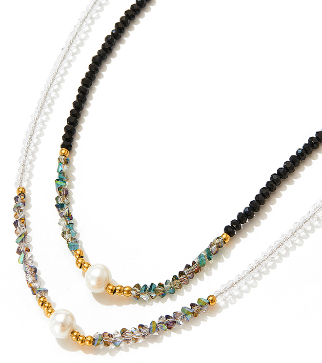 Black and White Crystal Beaded Pearl Stainless Steel Vintage Necklace
