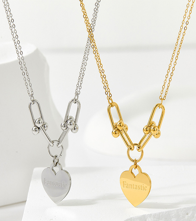 Water Proof & Non-fading Heart Square Charm Necklace Stainless Steel Jewelry