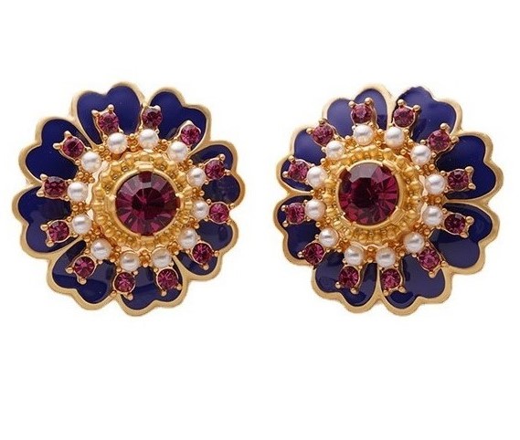 Luxury Trendy Black Glass Stone Flower Stud Earring