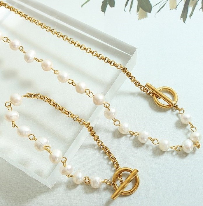 Freshwater Pearl OT Buckle Bracelet Necklace Jewelry Set