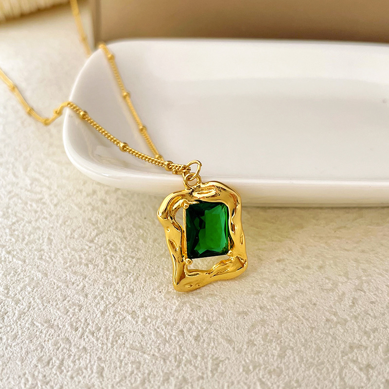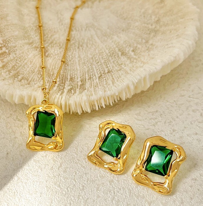 Amazon Trendy Irregular Emerald Green Zircon Earring Necklace Jewelry Sets
