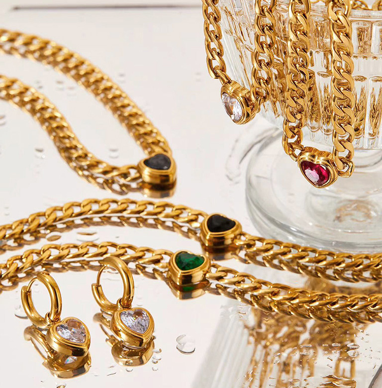 INS Heart Zircon Pendant Necklace Bracelet Earrings Jewelry Set