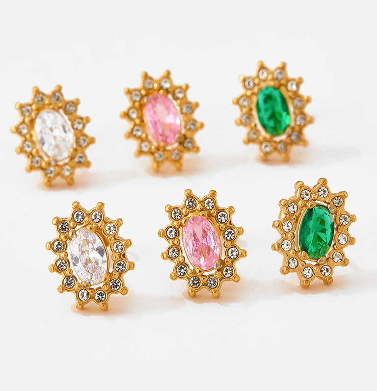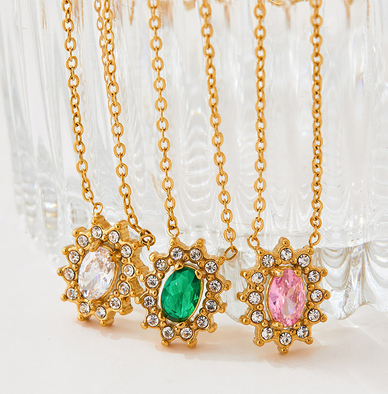 Amazon Luxury Zircon Earring Necklace Bracelet Stainless Steel Gold Plated Jewelry Set