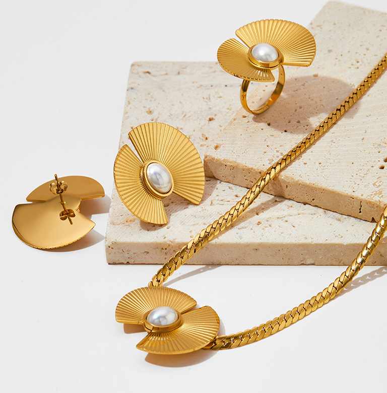 Elegant Vintage Pearl Necklace Ring Earring Women's Jewelry Set
